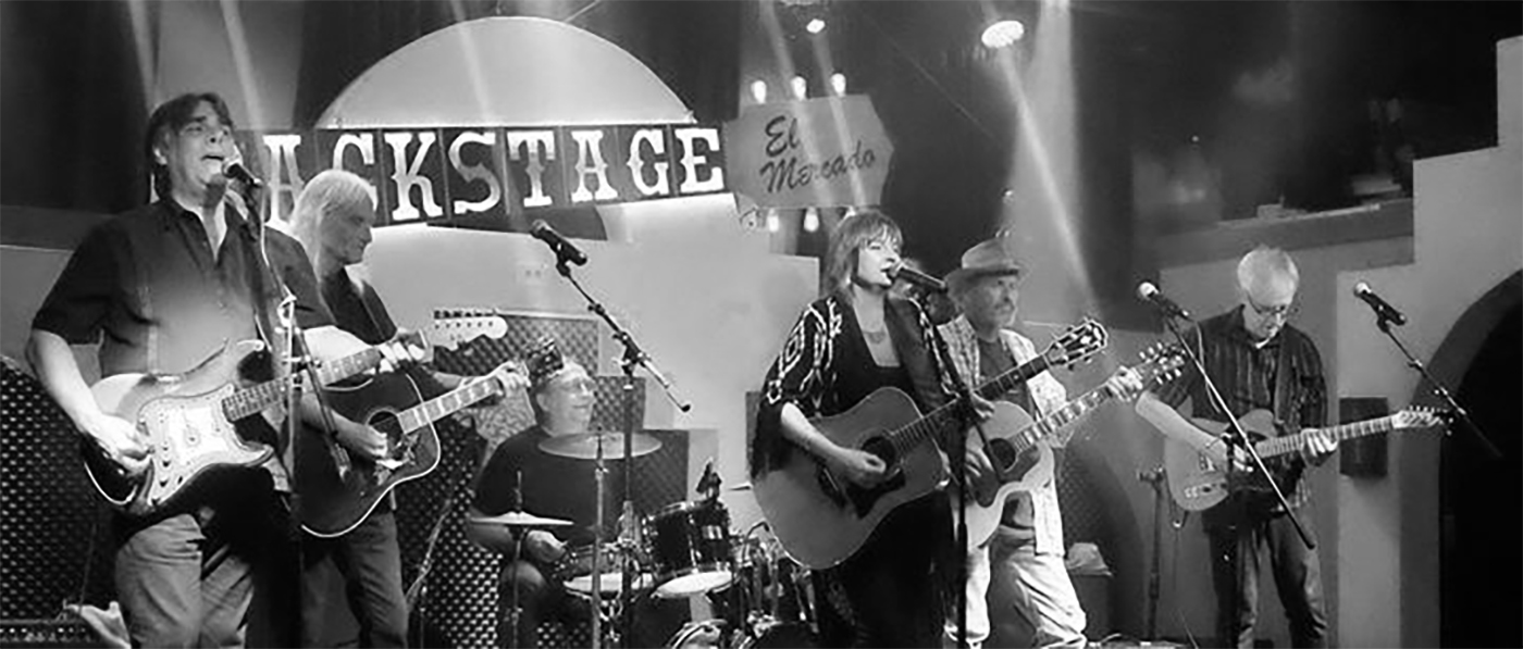 Chris Gage, Jimmie Dale Gilmore, Bobby Kallus, Christine Albert, David Carroll, Butch Hancock and Bill Kirchen (Commander Cody) at El Mercado in Austin, TX.