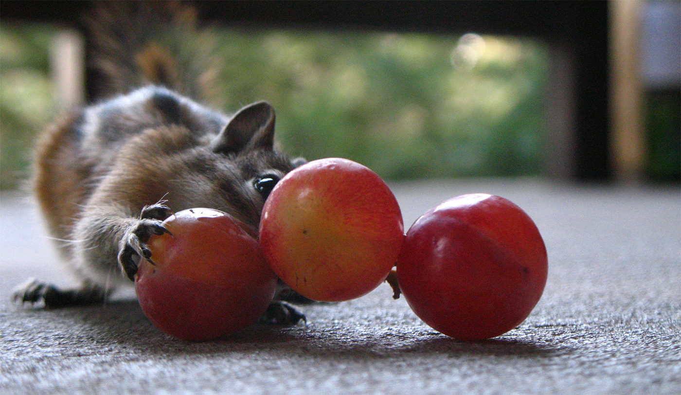 I waited for this little guy to grab the grapes. Tiny little chipmonk.