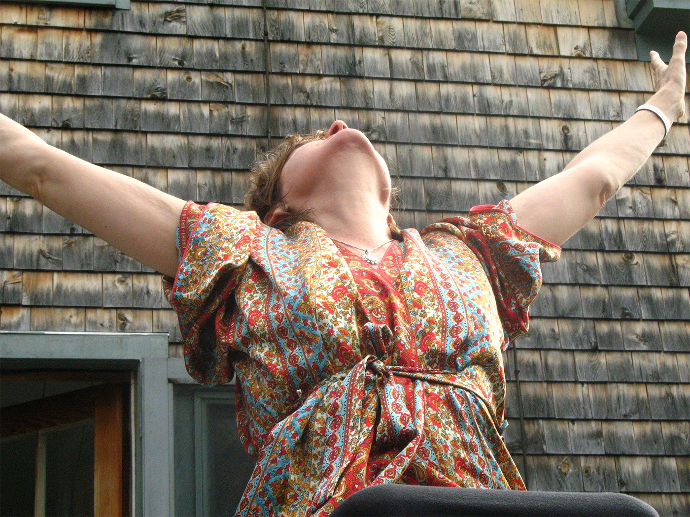 Pioneer woman enjoying the morning at Rolke Ranch.