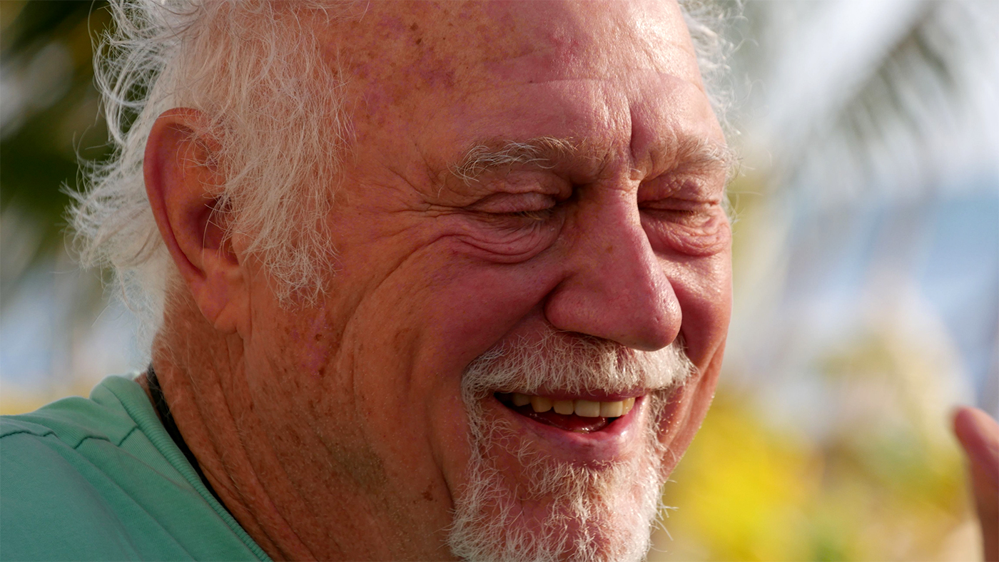 Jerry Jeff sneaks in some morning coffee on the boat dock.